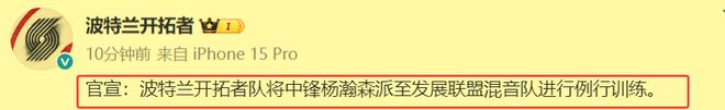 开拓者官宣!杨瀚森正式下放,打湖人回归!